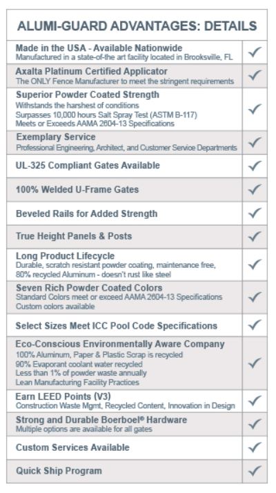 At Paramount Fencing, we carry Alumi-Guard aluminum products. Their fencing systems are durable, attractive, and superior to all aluminum fence products in today's market. Alumi-Guard's headquarters are located in Florida, so our relationship with this company benefits the local economy.